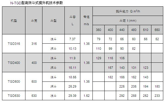 TGD提升機牽引構件采用高強度鋼絲繩芯橡膠帶,克服了鏈條嚙合驅(qū)動產(chǎn)生動載荷,較鏈條更輕便,工作平穩(wěn),能以更快的運動速度達到更高的生產(chǎn)率,在同樣的生產(chǎn)條件下,膠帶因其工作速度高和自重較輕,可使物料線載荷和牽引構件的線載荷減少,從而減少整機的尺寸和自重。同時由于膠帶具有良好彈性和柔韌性,在料斗進行裝載時有減振作用,由于采用了高強度鋼絲繩芯膠帶,可使提升機的提升高度和輸送量大為提高,因而該產(chǎn)品具有良好的發(fā)展前景。