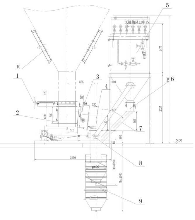 2、庫側(cè)散裝機示意圖